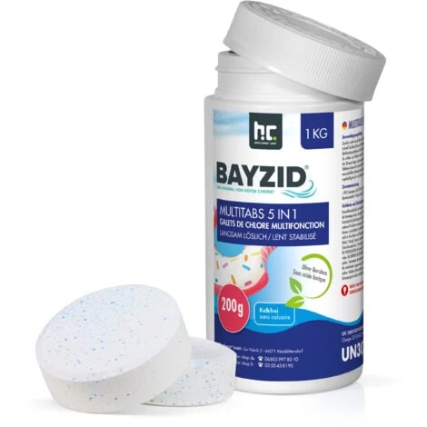 Le chlore multifonction Hoefer réajuste le pH de l’eau, désinfecte l?eau en détruisant les bactéries, virus et champignons dans l?eau, empêche la prolifération des algues et les combat, clarifie l?eau grace aux floculants et nettoie l’eau.