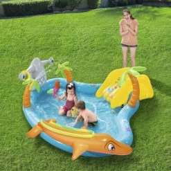 Amusement et jeux dans la piscine gonflable pour toute la famille