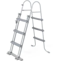 Grâce aux parois latérales extra larges, petits et grands trouveront un endroit pour se détendre et s’éclabousser. L’optique de la piscine est maintenue en bleu et blanc et s’intègre ainsi à merveille dans votre jardin et votre espace piscine. La piscine est fabriquée en vinyle résistant et d’une épaisseur de 0,32 mm et a une capacité de 1 161 litres d’eau. La construction robuste de la poutre en I garantit que les trois anneaux d’air ne cèdent pas trop, assurant ainsi une plus grande stabilité. Des soupapes de sécurité faciles à utiliser ont été intégrées pour une ventilation rapide de la piscine, qui peut également être utilisée pendant le fonctionnement.