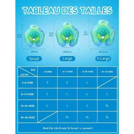 【Foule appropriée】 Recommandé pour les enfants de 3 à 7 mois, poids de 11 à 24 lb (taille S) ; 5-18 mois, poids 13-38 lb (taille L), 1,5-6 ans, poids 28-48 lb (taille XL), ou vous pouvez nous contacter, nous vous recommanderons la taille pour votre bébé.