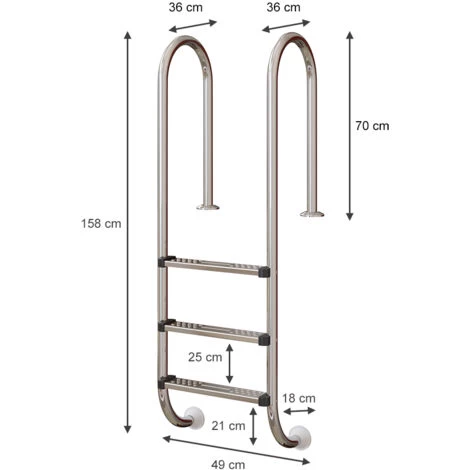 Larges, les trois barreaux antidérapants de l’échelle permettent une entrée et une sortie confortables du bassin ou de la piscine.