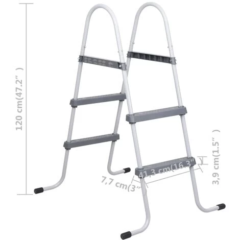 - Cadre solide : le cadre de l’échelle de piscine est fabriqué en acier très solide et offre une capacité de charge maximale de 150 kg.