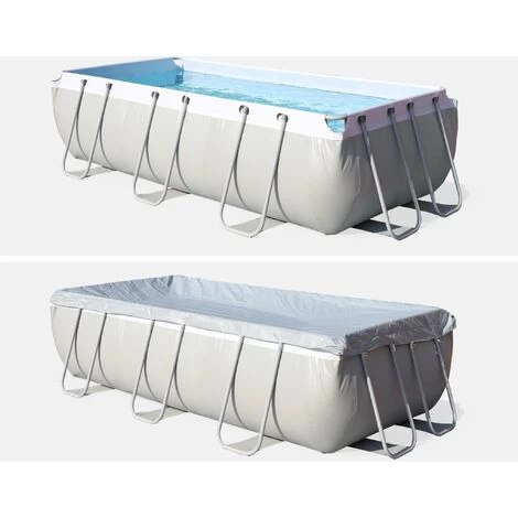 – une piscine tubulaire grise rectangulaire 4x2x0.99m