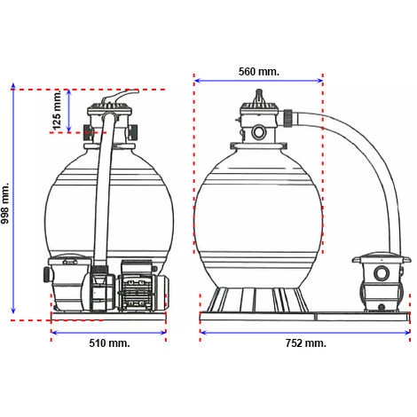 • Filtre à sable de 500 mm de diamètre et pompe sans préfiltre de 0.75 CV.