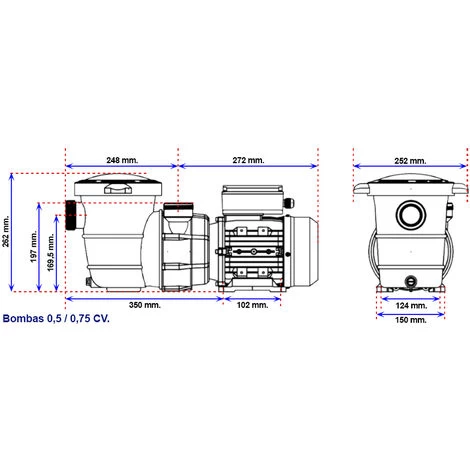 | Puissance pompe | 0,25 CV | 0,35 CV | 0,75 CV | 1,50 CV |