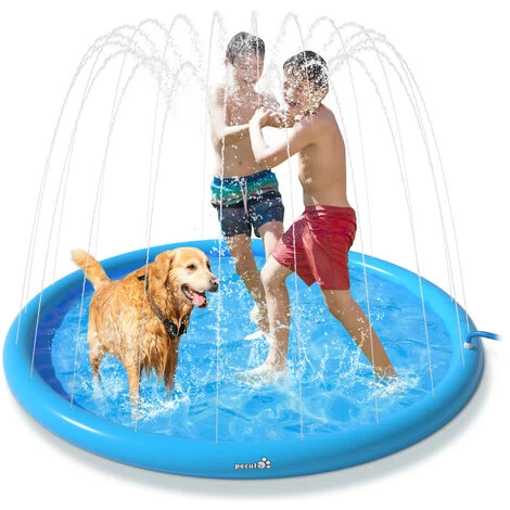 【Jouet d’Eau d’Été Idéal】Avec objectif–la sécurité avant tout, ce jeu d’eau exterieur ne conviennent pas seulement aux adultes, mais aussi aux enfants plus de deux ans et au chien! Le tapis avec jet fontaine résiste à la forte température, parfait pour