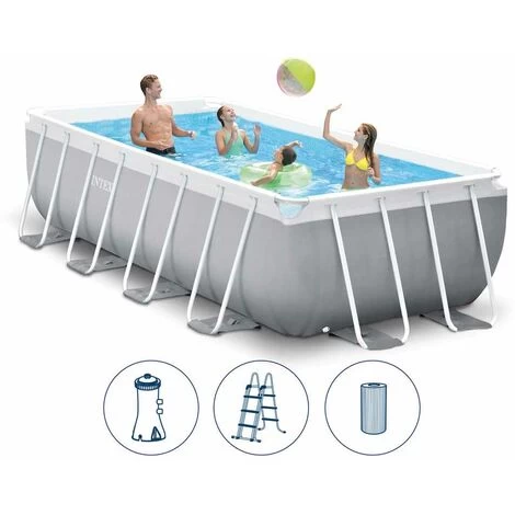 Piscine rectangulaire hors-sol autoportante Intex Prism Frame 26788 (Nouveau modèle de la version Intex 26776) 4×2 m, résistante et solide, équipée d’une pompe à filtration, filtre à cartouche et d’une échelle.