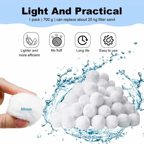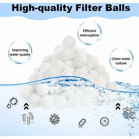 - 【Balles Filtrantes Piscine Améliorées】 – Le balles filtrantes est fabriqué à partir de fibres de polyester à 100 %. Très élastiques, légères et respectueuses de l’environnement, elles constituent une alternative efficace aux sable filtration traditionnels.