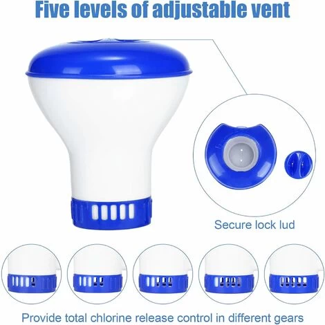 Distributeur à billes flottantes – Ce distributeur de chlore flottant robuste est conçu pour être utilisé avec des comprimés afin de maintenir un débit uniforme de chlore dans les piscines ou les sources chaudes. Vous pouvez facilement ajuster le flux de médicaments en fonction de la situation réelle du pool de médicaments. Cinq niveaux peuvent être ajustés à l’exportation, économiser le coût du chlore et réduire la chloration et une chloration insuffisante.