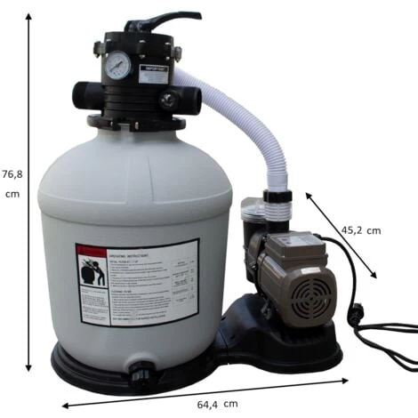 Avec notre système de filtration à sable puissant, votre piscine reste propre en permanence ! Ce système veille continuellement à garantir une eau claire. La vanne 7 voies avec manomètre et le programmateur veillent à une manipulation facile et vous offrent encore plus de temps libre pour vous rafraîchir dans la piscine. Profitez de la saison de baignade et laissez-vous convaincre par la puissance de ce système !