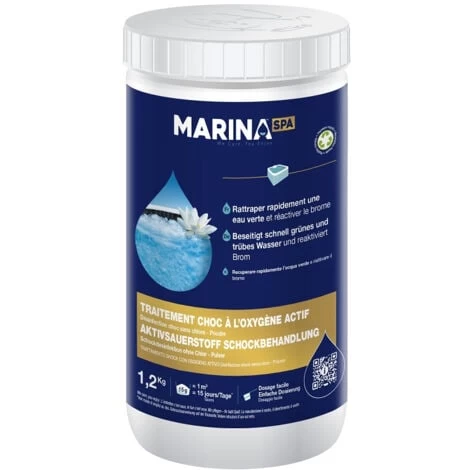 Choc en granulés sans chlore pour spa gonflable 1,2 kg de la marque Marina. Contre les eaux vertes ou troubles.